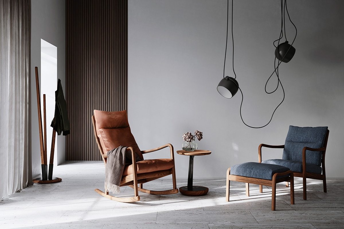 オーソドックスなスタイルをベースにしたハイバックのロッキングチェア。